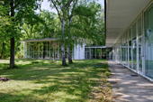 Easy Listening-Musik erklingt, und das passt gut, ja. Es ist eine Leichtigkeit, eine Helligkeit, ein Schwung in diesen Bildern. Es sind die Bilder aus einer verlorenen Zeit. Einer Zeit, in der die Deutschen Durchsicht wollten, Helligkeit, Transparenz, Demokratie. Die Architektur dazu bestand aus viel Glas, aus klaren Formen, schwungvollen, kaum sichtbaren Übergängen von Innen und Außen.